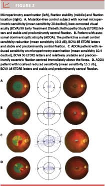 Microperimetry, which enables retinotopic mapping of fixation and localised fundus sensitivity, can be used to find small visual field defects that escape detection with conventional perimetry [12-15]. Studies of fixation patterns have been made in optic neuropathies other than ADOA. In the somewhat comparable Leber hereditary optic neuropathy, good visual acuity is related to stable fixation [16] and, likewise, severe glaucoma can be accompanied by poor, predominantly eccentric fixation [13].