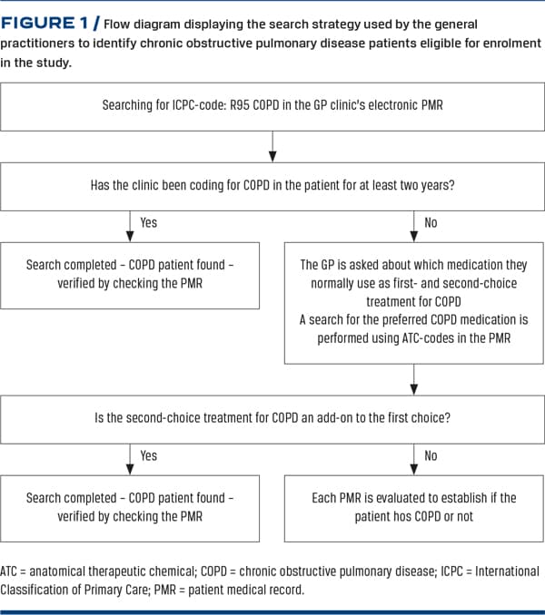 COPD patients were identified through the GPs electronic record systems by searching for the International Classification of Primary Care code (ICPC code) R95: COPD.