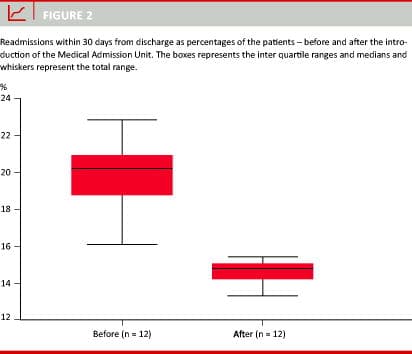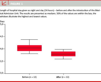 Conclusion: The establishment of the MAU improved efficacy at the hospital owing to reduction in the length of hospital stay and the number of readmissions. As judged from mortality rates and indicated by readmission rates, neither the quality of treatment nor patient safety was compromised in a setup, where patients with suspected cardiac diseases are admitted along with patients suspected to suffer from other internal medical diseases. The dynamics between multidisciplinary physicians and nurses seems to improve when they are working close to each other in a setting where team spirit evolves.