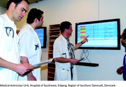 In Region of Southern Denmark, this reorganisation is developing. Health care professionals and administration staff members issued a paper describing an overall framework for the "future emergency services" [2].This report recommended the adoption by hospitals of a value chain mindset as a basic element with a view to optimizing all activities to ensure the benefit and usefulness of the performed activities to patients. The aim was to further the creation of a coherent, patient-orientated, contemporary and quality-conscious health service. One consequence is that physicians need to work together in multidisciplinary teams across specialities. The medical admission unit (MAU) is an environment where the patient is examined and treated in a single location, as the relevant expertise and support functions show up and make their contribution to the overall process.