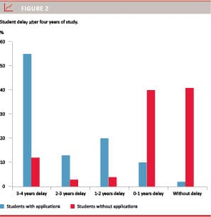 In the present study, the study period of the majority of the applicants was delayed by more than two years relative to the prescribed time of study. It is obvious that extra attempts to pass the exams and extension of the time limit will lead to delay. The delayed students had difficulties staying in a study group and maintaining their social network. Furthermore, when the student is more than one year delayed, the payment of the Danish state education grant will stop. This may cause financial difficulties.
