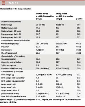 Material and methods: A quality assurance study was performed at Stavanger University Hospital in women with a pregnancy length ≥ 290 days. A total of 480 women who delivered prior to the introduction of the new guidelines (control period) were compared with 493 women treated according to the new recommendations (study period).