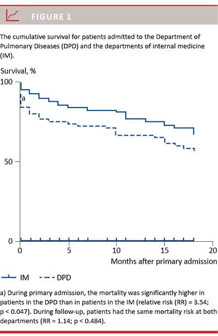 Patients who survived primary admission at the Department of Pulmonary Diseases or the departments of internal medicine had equal risk for readmission,