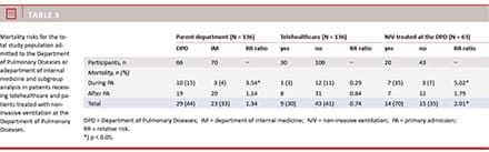 endocrinology, infectious diseases, haematology, gastroenterology, medical emergency and general internal medicine, the Medical Centre, Aalborg University Hospital), has any influence on readmission rates within 12 months and mortality within 18 months, and to elucidate the number of readmissions and mortality in patients treated for AECOPD with non-invasive ventilation. Finally, we evaluated the effect of telehealthcare on the number of readmissions and mortality within a year.