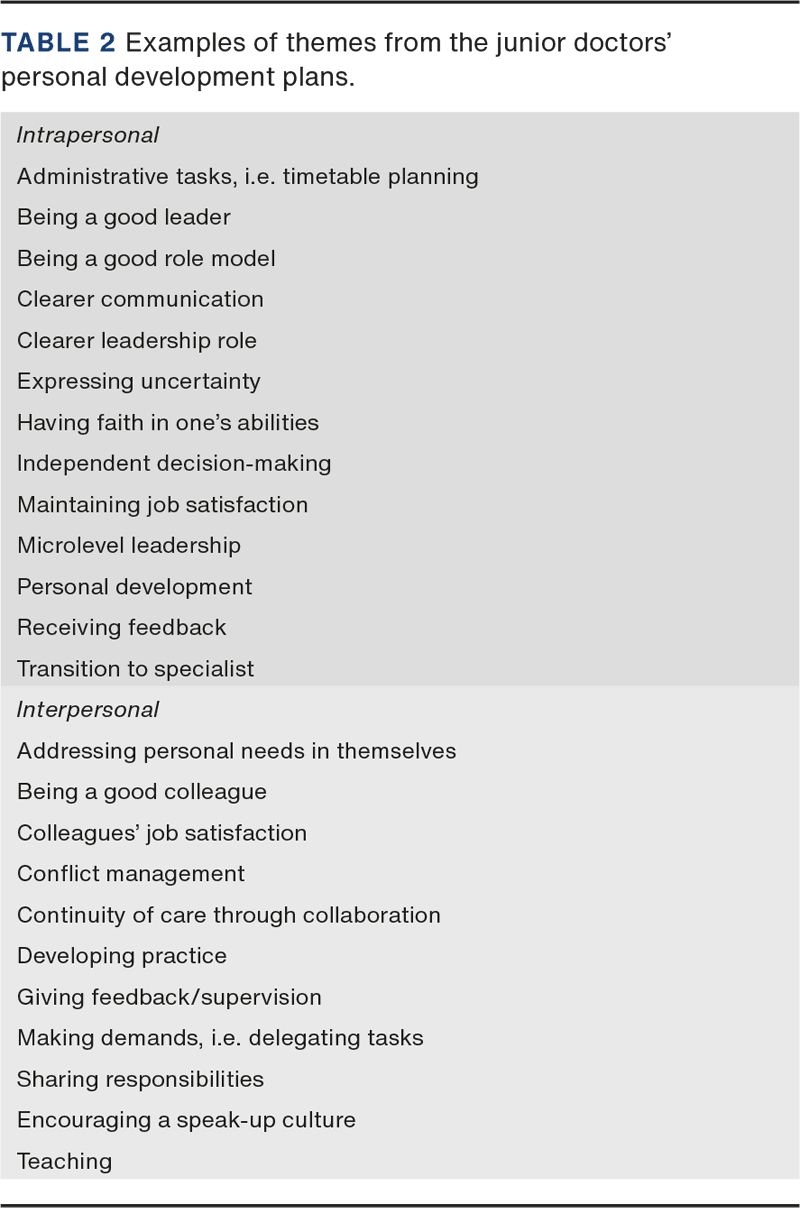 Despite progress, the junior doctors reported that the individual objectives from the development plans were not yet fully achieved as leadership development is an “ongoing process”. In addition, some of the junior doctors could not recall specific objectives. Nevertheless, when reminded, they realised that they had been working unconsciously with the development plans and felt that their leadership skills had progressed. This finding indicates the importance of recapitulating the development plan, although only very few reported having had a formal follow-up dialogue with a mentor or supervisor.