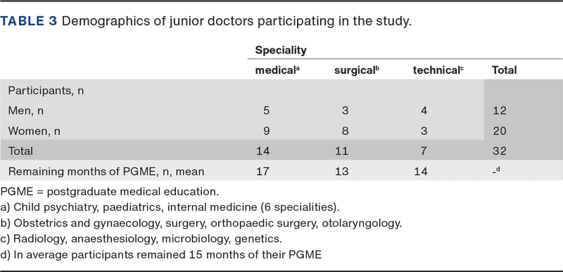 This study included junior doctors representing various specialities and hospitals. The participation was high for the first interview and acceptable for the second interview, and data saturation was reached. Thus, the results may be considered representative for all Danish junior doctors in PGME.