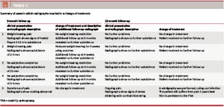 Clinical findings will often be more important in determining patient management than radiographs. Surgeons will often not revise a THA on radiographic information alone [9]. Tigges et al [9] examined this by investigating the consequence of radiographs in outpatient follow-up. A senior surgeon evaluated each of his follow-up outpatients (n = 175) before reviewing the accompanying radiographs. After the surgeon made and recorded his patient treatment plan based on the clinical evaluation, he reviewed the radiographs for findings of failure and recorded any resulting change in management plan. In only one patient did the radiographic findings change clinical management. The authors also concluded that patients can be divided into two categories: symptomatic and asymptomatic. Most, if not all, patients with complications will experience some degree of pain. Similar findings were reported by Hacking et al [10], who examined the cause of 110 THA revisions in a four-year period. The authors found all patients requiring revision to be experiencing pain. It was also noted that in none of the 110 cases requiring revision did routine elective follow-up of primary THAs result in detection and subsequent revision of an asymptomatic joint.