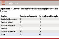 According to National Danish Guidelines on Hip Replacement published by the Danish Society of Orthopaedic Surgeons, radiographs are not indicated within the first year, aside from the immediate post-operative radiograph [3]. Despite this, approximately one in three clinics in Denmark still makes routine radiographic examinations during the outpatient follow-up (Table 2).