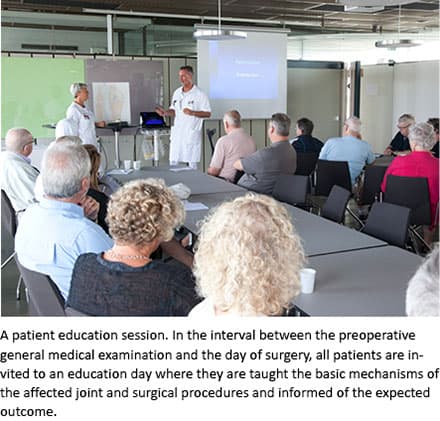 THA and TKA are performed in vast numbers around the globe and many efforts – including tribological and the fast-track methodology – are made to improve the outcomes for these patients. Preoperative patient education (PPE) is widely used to inform patients and relatives about various aspects of the upcoming operation and to motivate patients to be active participants. This review focuses on preoperative education and its potential effect on pre- and post-operative outcomes.