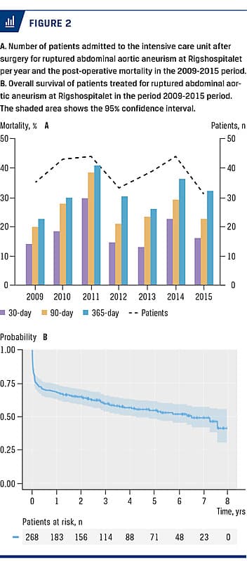 Accordingly, the aim of this population-based observational study was to describe temporal trends in mortality for patients undergoing surgery for rAAA in the Capital Region of Denmark between 2009 and 2015.