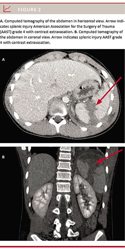 Abdominal trauma is associated with a high mortality mainly due to excessive bleeding into the peritoneal cavity [1]. In children, the spleen is the most frequently affected organ in abdominal trauma [2]. Due to anatomical and physiological differences compared with the adult population, children elicit unique injury patterns and should be treated accordingly [2].