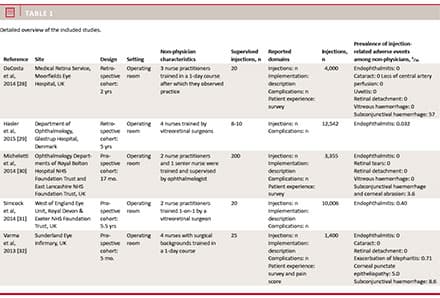 22 September 2015. We used the following search strategy: (nurse OR orthoptists OR optometrist OR non-physician) AND (intravitreal).