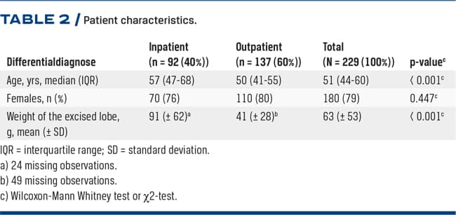 Surgery in an outpatient setting was offered if the patients met the inclusion criteria (Table 1). Otherwise, patients were offered surgery in an inpatient setting.