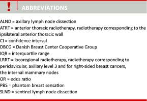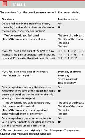 The purpose of this study was therefore to examine the prevalence and associated factors of PBS among mastectomised Danish women in a nationwide study.