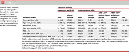In conclusion, the prevalence of PBS during the first 1-3 years after mastectomy was 26% (18-35%), and it was highest among young women while other treatment principles had less or no influence on the prevalence of PBS.