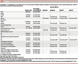 The odds ratios show the association between each item and the patients’ overall impressions. Both adjusted and unadjusted ratios were calculated [13]. Combinations of the “non-problem scores” and the calculated odds ratios were interpreted as an indicator of areas with most potential for improvement seen from the patients’ perspective [12].