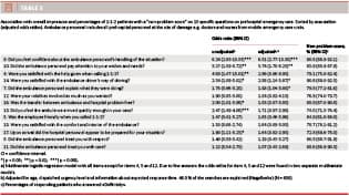 In Table 3 the “non-problem scores” and their association with the overall impression (odds ratios) are shown for the 13 specific items. The questions which were highly associated with the overall impression and characterized by low “non-problem scores” are: the assistance provided when calling 1-1-2, the ambulance personnel’s ability to explain what they were doing and the involvement of relatives in accordance with the patients’ needs.
