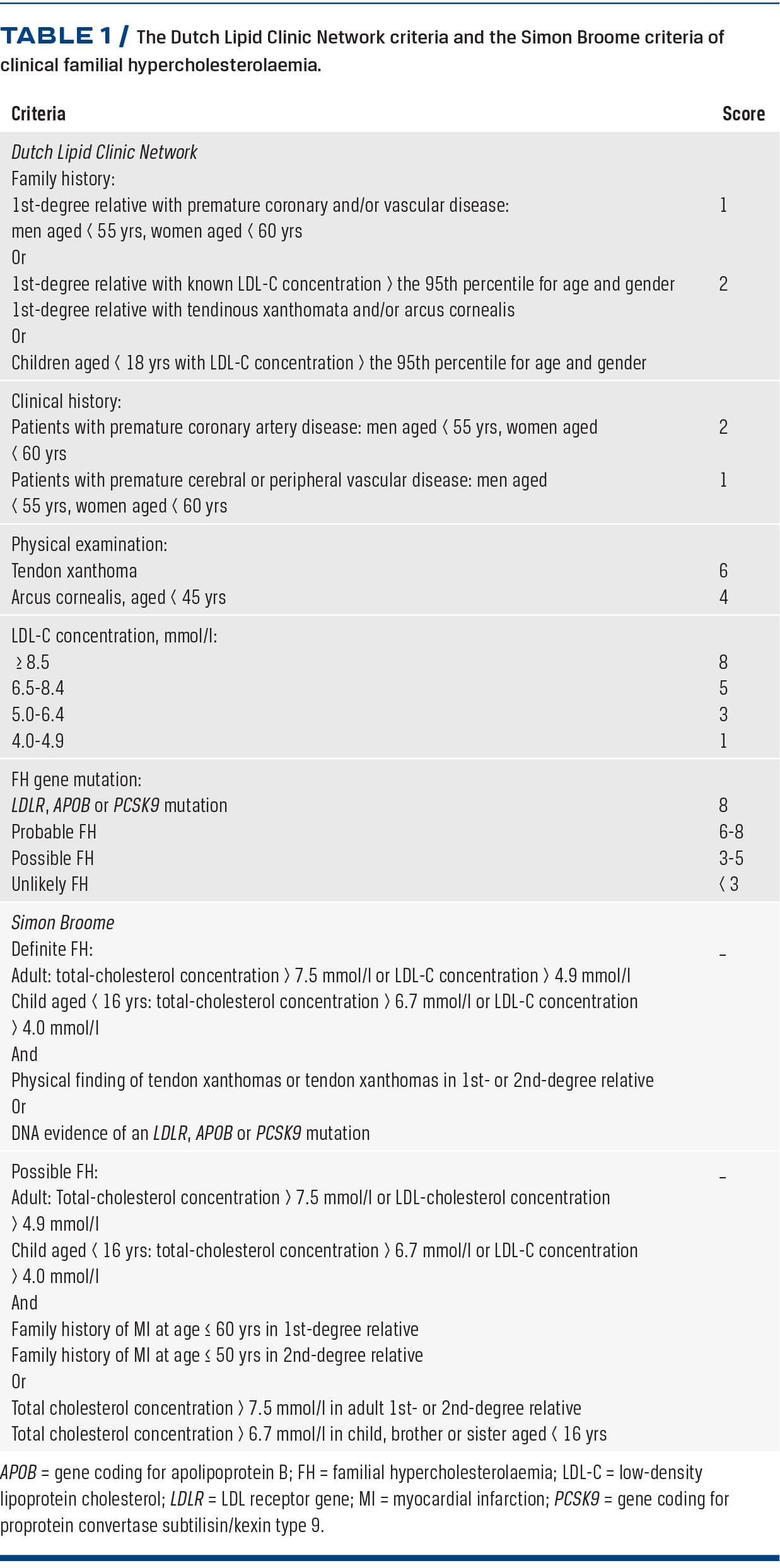 Clinical familial hypercholesterolaemia diagnosis