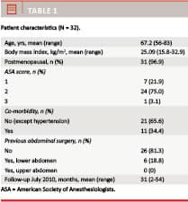 A total of 32 patients were included. The characteristics of the patients are given in Table 1.