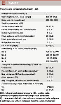 Conclusion: The SN procedure can be used for endometrial cancer and it has a high detection rate and no false negative SNs were detected. The sensitivity of the SN procedure may be increased by the use of single-photon emission computed tomography (SPECT)/computed tomography (CT) and peroperative cytokeratin (CK) staining of the SN(s).