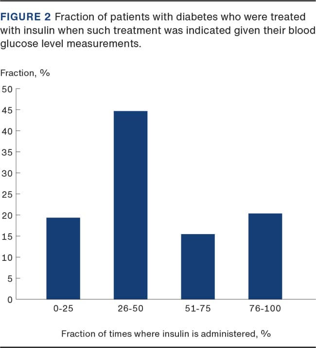 RESULTS. Among 2,463 included patients, 10% had diabetes. The three most frequent diagnosis groups were infection, fracture of lower extremity and hospitalised for alloplastic surgery. The number of blood glucose measurements during 24-hour perioperative care was 6.5. Among patients analysed, 10-20% did not have their blood glucose measured in the days following surgery. Among patients, 64% received insulin 1-50% of the required times.