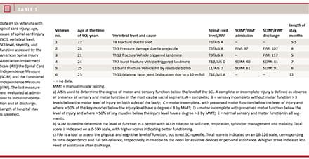 Outcome measures related to level of functioning have changed over the period within which the veterans were injured, and the Spinal Cord Independence Measurement (SCIM) was introduced instead of the Functional Independence Measure (FIM). For veterans who were scored at admission and discharge with the same measure, an increase was observed in the level of functioning (Table 1).