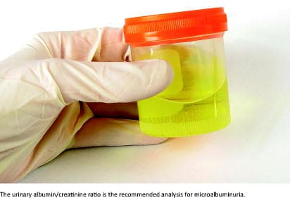 Screening for microalbuminuria and albuminuria can be easily and conveniently conducted with the assessment of UACR in a single urine sample. If the UACR is in the microalbuminuric level of 30-299 mg/g, another two urine samples are needed to establish the presence of microalbuminuria. Furthermore, urinary tract infection has to be ruled out. In case of a markedly increased UACR, a 24-hour urinary sampling is recommended in order to obtain an accurate measure of albuminuria. Determination of the albumin concentration in a spot urine sample is not recommended due to the influence of the urinary volume. In the present study, 41.9% had a minimum of one UACR analysis, whereas a 24-hour urinary sampling had been performed in 2.1%. The inappropriate method with measurement of albumin or protein concentration in a spot urine sample had been used in 17.1% and 5.8%, respectively. Hence, there seems to be uncertainty as to the optimal method when screening for microalbuminuria and albuminuria.