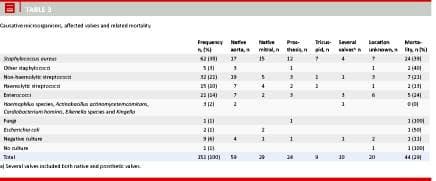 Heiro M, Helenius H, Makila S et al. Infective endocarditis in a Finnish teaching hospital: a study on 326 episodes treated during 1980-2004. Heart 2006;92:1457-62.