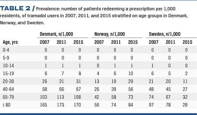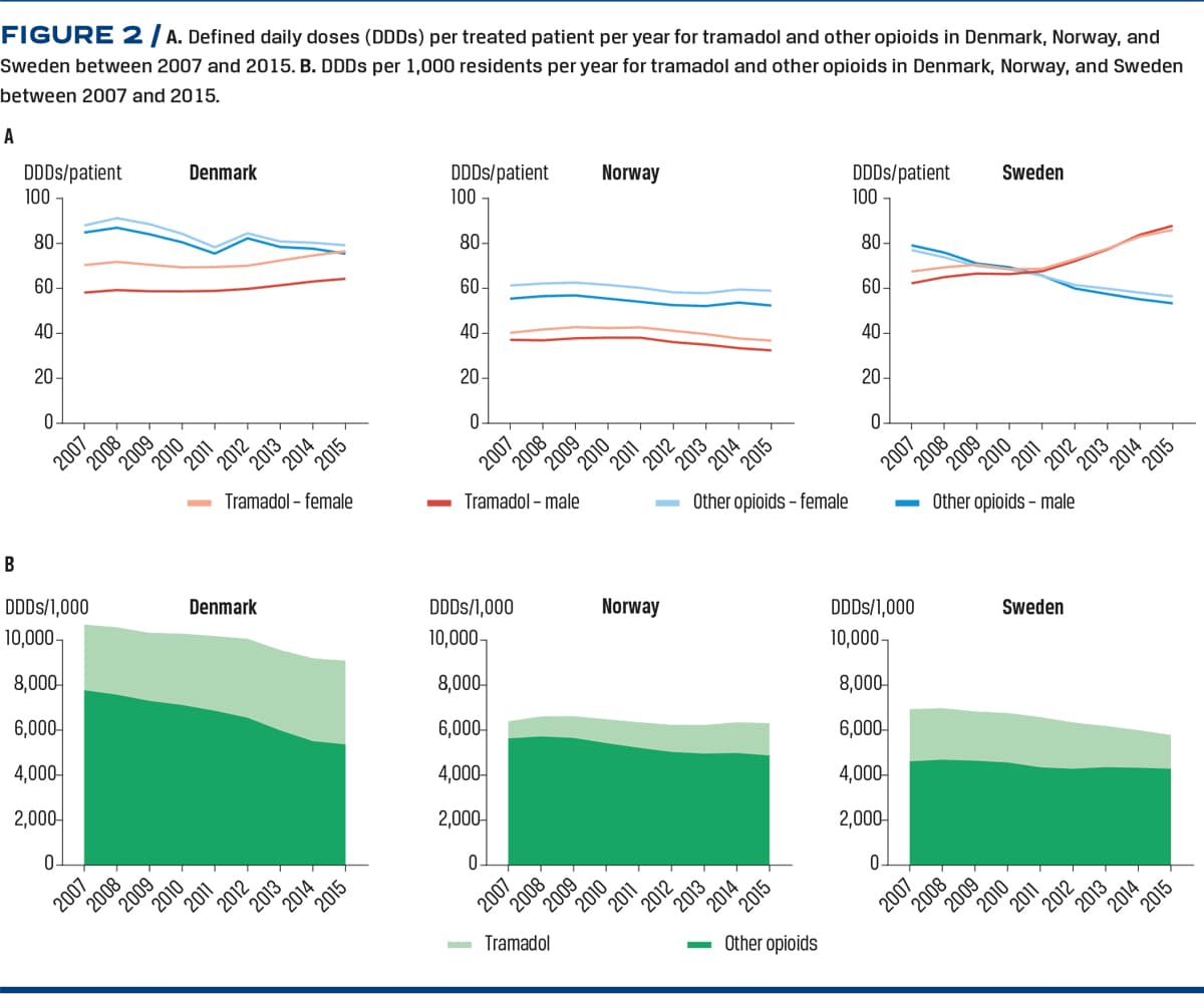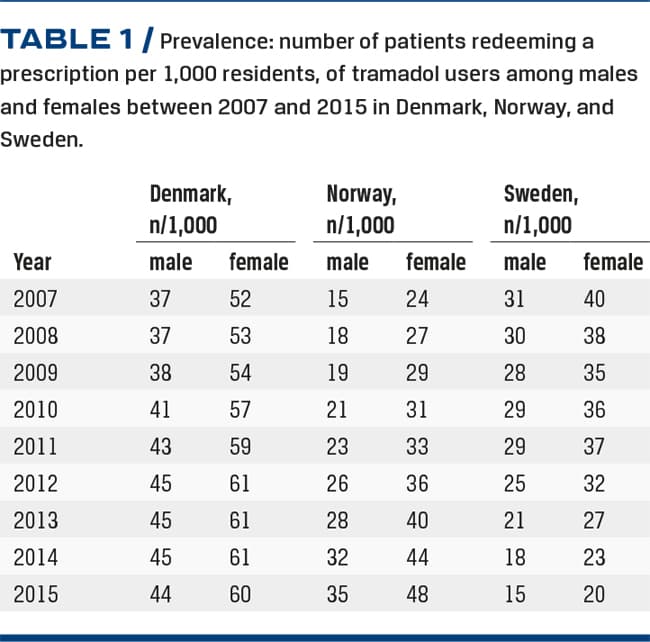 Our findings regarding the prevalence of tramadol users during the study period are in line with a recently published study that reported a high prevalence of tramadol users in Denmark and Norway compared with Sweden in 2015 [6].