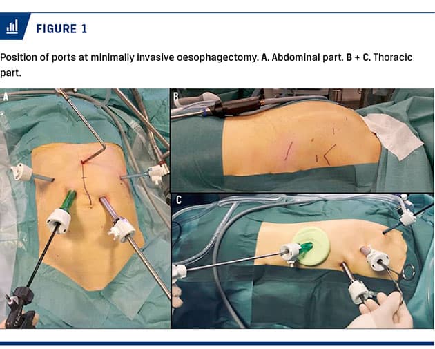 The procedures were performed by a team of consisting of two gastrointestinal and two thoracic surgeons. All had experience in laparoscopic and thoracoscopic procedures as well as in open oesophageal cancer surgery before MIO was introduced.