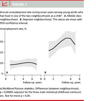 In conclusion, we found that the risk of unemployment during early adulthood is clearly associated with a combination of unfavourable family-related socioeconomic factors during childhood and probably also with neighbourhood disadvantage. Public health interventions should focus on deprived neighbourhoods in order to prevent early marginalisation. Methods to identify threatened children and families and support their social engagement are needed.