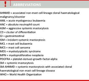 Patients with SM-AHNMD are treated for their SM and also receive specific treatment of the non-mast cell component according to established regimes for the haematological diagnose [35, 38, 39].