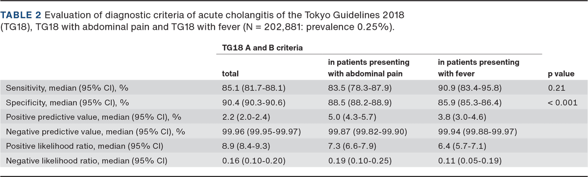Previous studies have reported a lower sensitivity for Charcot’s triad and the Tokyo Guidelines 2007 (TG07) than for the TG18, supporting the use of TG18 over previous algorithms [7, 18-20].