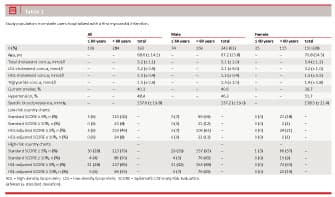 Among women, no younger and only three older than 60 years (two with SCORE ≥ 10% and one with total cholesterol > 8 mmol/l) passed the guideline-recommended thresholds above which drug treatment should be considered (Table 1).