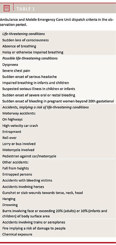 Following each MECU run, patient characteristics (including the patient’s Civil Registration System number which identifies the patient) [5], the tentative patient diagnosis and the treatment are entered into the MECU database.