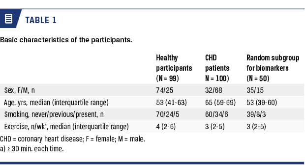 The inclusion criteria were men or women aged 30 years or more who were able to speak, read and write Danish. Healthy participants (n = 100) were recruited by advertising in the local area, while participants with CHD (n = 100) were primarily recruited from Aalborg University Hospital and also from the local counselling centre of the Danish Heart Association. The exclusion criteria were severe non-cardiac illnesses, unstable CHD, unstable diets, intention to change diet or other factors that might influence the study results.