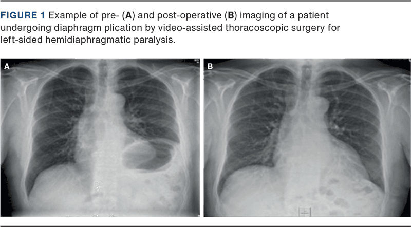 - Freeman RK, Van Woerkom J, Vyverberg A, Ascioti AJ. Long-term follow-up of the functional and physiologic results of diaphragm plication in adults with unilateral diaphragm paralysis. Ann Thorac Surg. 2009;88(4):1112-1117. https://doi.org/10.1016/j.athoracsur.2009.05.027