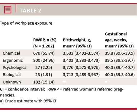 Introduction: Our aim was to study the association between pregnant women’s referral status for occupational risk assessment, and their risk of preterm delivery (< 37 weeks), low birthweight (LBW) (< 2,500g) and small for gestational age (SGA).