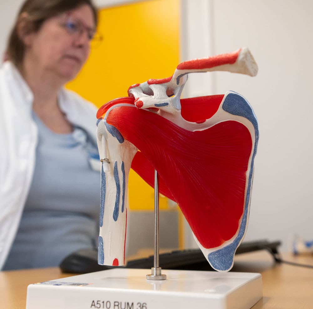 Ortopædkirurg Jette Wessel Vobbe er uddannelsesansvarlig overlæge i skulder-albue-enheden på Ortopædkirurgisk Afdeling på Sygehus Lillebælt, Vejle Sygehus. Denne dag er hun i ambulatoriet, som fylder mere for hende i hverdagen, end det kirurgiske gør.