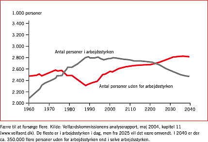 På den anden side bliver Danmark måske endnu mere afhængig af indvandring udefra end andre EU-lande, fordi vi i forvejen har udvidet arbejdsstyrken til det punkt, dels hvor det bliver vanskeligere at forøge den yderligere, og dels hvor indgrebene af mange vil blive opfattet som indgreb i legitime rettigheder. Dilemmaer som enhver regering vil stå over for, uanset farve. Truslen mod efterlønnen og de mislykkede indgreb mod deltidsunderstøttelse i 2003 er kun begyndelsen.