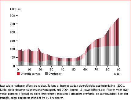 Den anden årsag til, at den kommende aldring kræver store forandringer er, at det danske velfærdssamfund er opbygget på en måde, hvor de gamle er meget dyre for samfundet. Den nuværende regering har nedsat en Velfærdskommission, der skal kortlægge de problemer, de demografiske forandringer fører med sig og give forslag til, hvordan de kan løses.