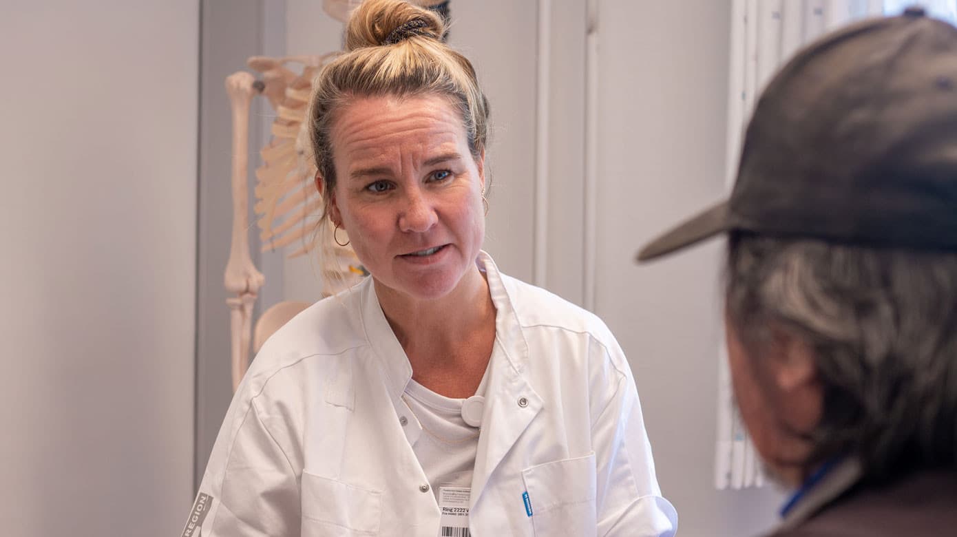 »Der kan jo komme nogen ind ad døren, hvor man tænker: ,hold da op, der er nok at gå i gang med’. Vi kunne sikkert finde 117 lidelser, vi burde gøre noget ved. Men hvis patienten kommer ind med en agenda om at ville have kigget på en lille godartet hudtumor, så er det den, jeg kigger på. Det skal være patienten, der sætter dagsordenen, og ikke lægen, hvilket jo ikke er anderledes end for alle andre patienter. Mange gange er det små problematikker, som man sagtens kan gøre noget ved, og på den måde kan vi få genskabt noget tillid til, at der er en læge, der lytter og gerne vil en«.