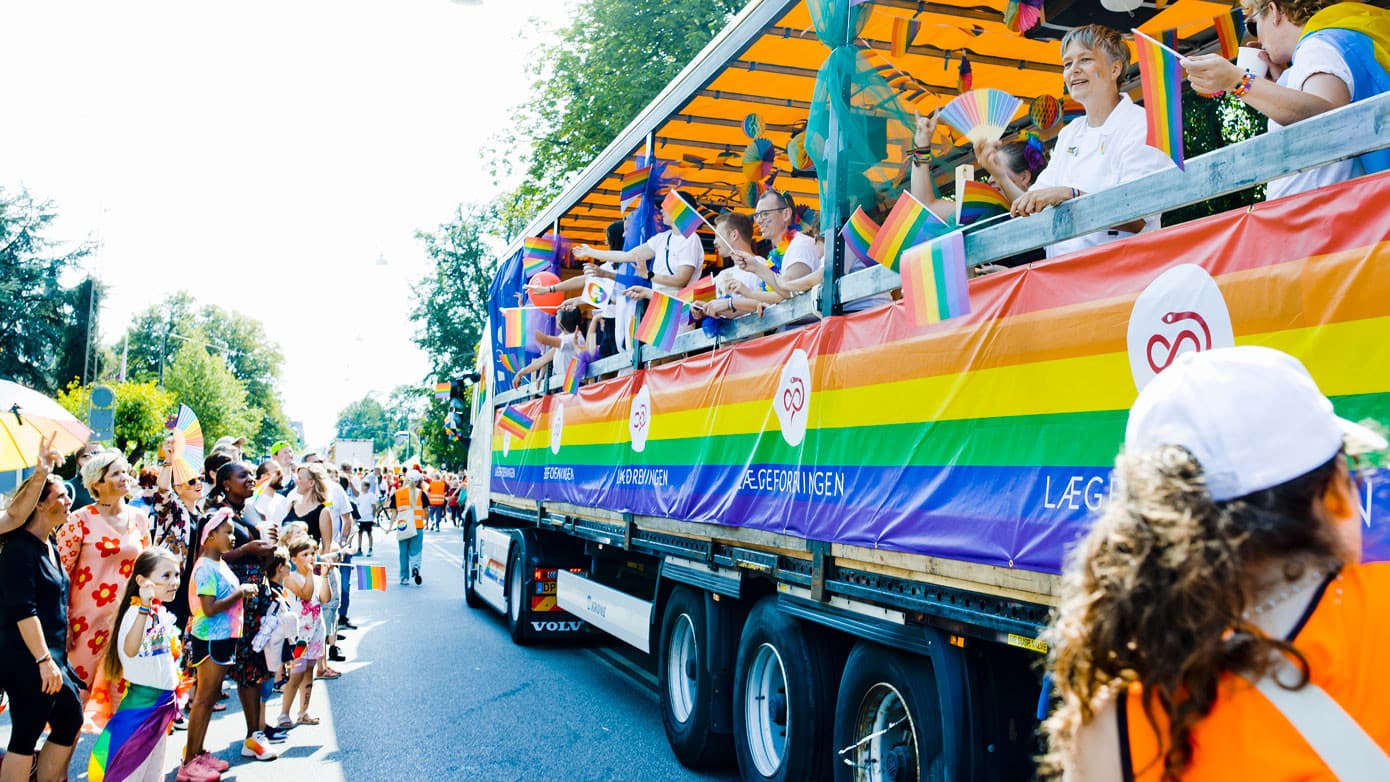 Lægeforeningen deltog i år i Copenhagen Pride-paraden for første gang. Formålet var at sende signaler både til læger, patienter og politikere. Og så var der en lille stikpille til Lægeforeningen selv fra en af deltagerne i optoget. Et optog, som bl.a. bød på en tilskuer, der gerne ville have hjertemassage af en læge.