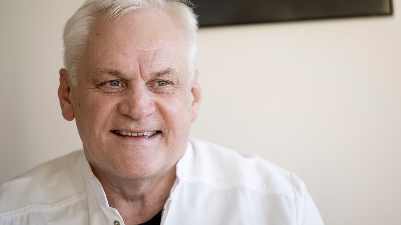 Efter at have solgt sin speciallægepraksis, var gastrokirurg Frank Svendsen Jensen for et år siden parat til at gå på pension. Men så var der bud efter ham der, hvor han trådte sine træsko for 30 år siden, og nu topper han sin karriere med en stilling som cheflæge. I kittel naturligvis, uden formel lederuddannelse og med en vis distance til sin nye titel.