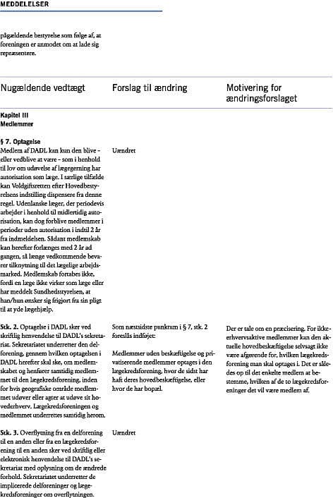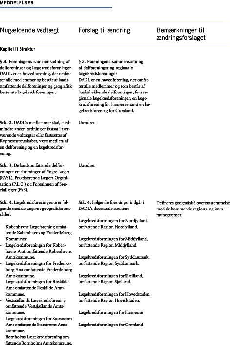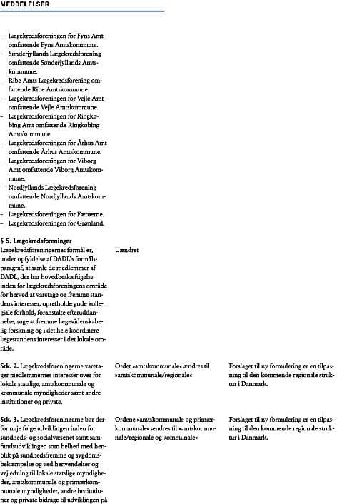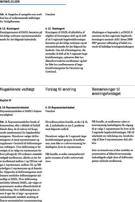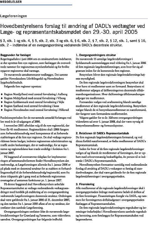 MeddelelseHovedbestyrelsens forslag til ændring af DADL's vedtægter ved Læge- og repræsentantskabsmødet den 29.-30. april 2005 Lægeforeningen 1. nov. 200501 min.
