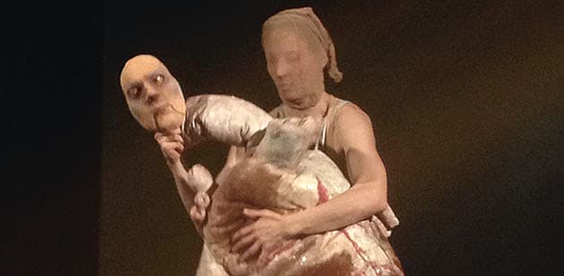 Legemsdele stikker op af en kasse på scenen. Tydeligvis fejlproportionerede og uægte, men alligevel foruroligende. Allerede inden forestillingen er gået i gang, aner man som tilskuer, at noget usædvanligt vil ske.