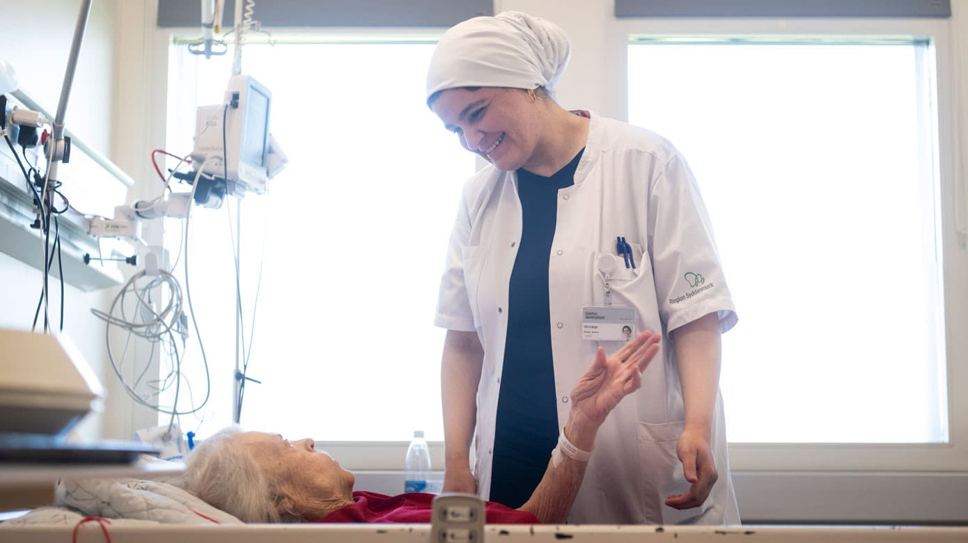 15.30 Jeg modtager en mand med akutte symptomer. Hans ven har ringet efter en ambulance, fordi patientens venstre mundvig hænger, han har talebesvær, balancebesvær, nedsat kraft og styringsbesvær i venstre side. Patienten er uden for trombolysevindue, da symptomerne startede for mere end 4,5 timer siden. Han scorer syv på NIH Stroke Scale, så jeg sender ham direkte til CT-perfusion-angio for at få afklaret, om der er behov for trombektomi på mistanke om stor karokklusion. Trombektomi kan man nå op til en dag efter symptomdebut.