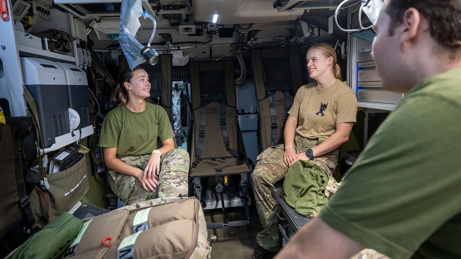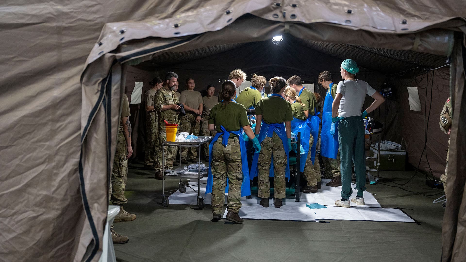 Som de første i landet har de kandidatstuderende på Aalborg Universitets lægeuddannelse i år kunnet erstatte klinikophold på sygehuset med et ophold i Forsvaret. Målet er at klæde de vordende læger på til krig og andre katastrofer: »Det er en opgave for universitetet at uddanne de studerende til det, samfundet har behov for«, fastslår prodekan.