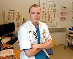 »Selv om jeg kun har været kort tid i min uddannelsesstilling, er jeg ofte ,den klogeste` på skadestuen eller ambulatoriet. Vikarerne gør, hvad de kan, og de gør det godt, men de er jo studerende, og jeg synes, der er flere problemer i at have så forholdsvis mange vikarer. Det tager pladsen for dem, der har behov for en uddannelsesstilling, og det undergraver dermed fireårsreglen. Desuden går det ud over min uddannelse, fordi jeg skal bruge tid på læring over for dem i stedet for selv at modtage læring. Endelig kan det ikke andet end presse kvaliteten og sikkerheden i og med, at de jo er studerende«, siger Uffe Nygaard.