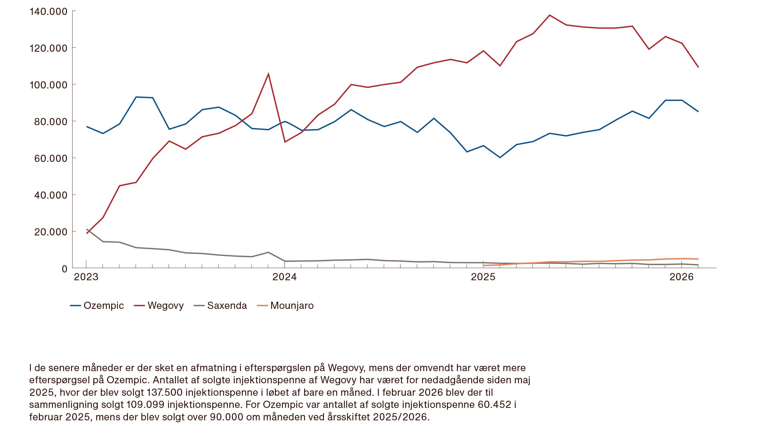 Antallet af brugere af Ozempic er i sidste halvdel af 2025 og de første måneder af 2026 kommet op på niveau med de måneder i 2023, hvor forbruget ellers toppede. Det samme er antal solgte injektionspenne.